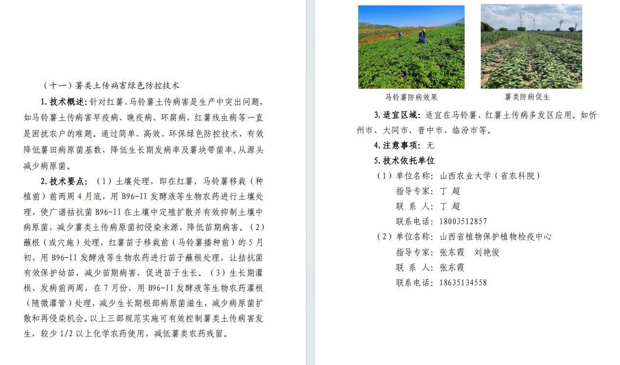 近日,山西省农业农村厅正式公布2026年山西省农业主导品种和主推技术名单,我中心“薯类土传病害绿色防控技术”入选,成为全省薯类产业高质量发展的技术支撑。